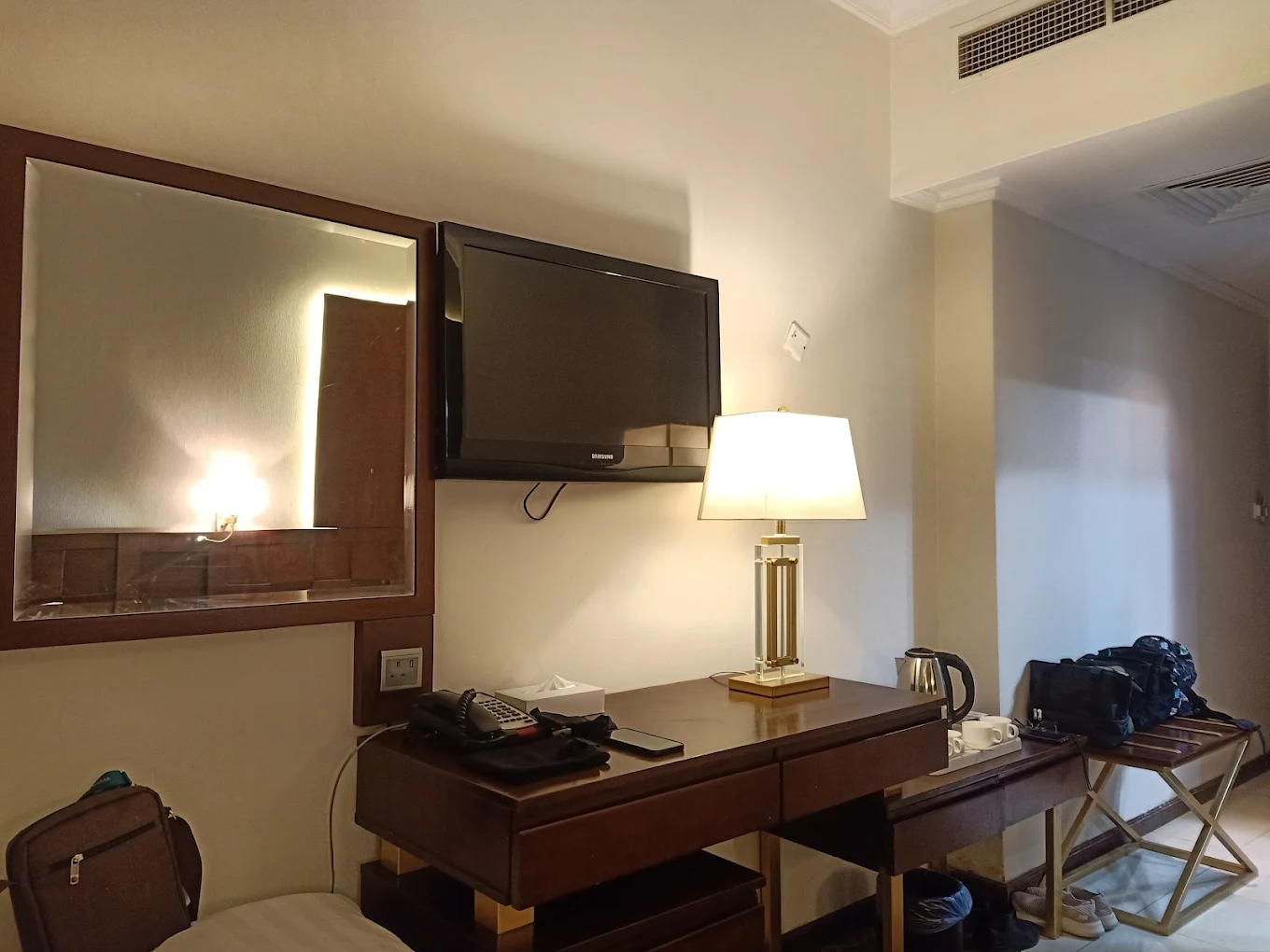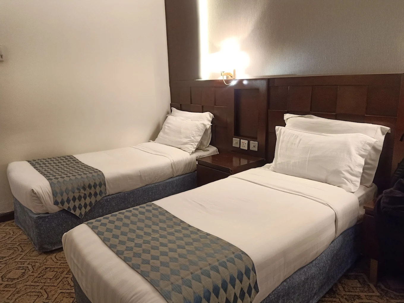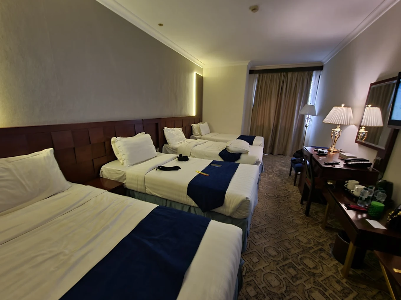 The rooms are modestly furnished with air-conditioning, satellite TV, and private bathrooms, and the property offers facilities such as elevators, a restaurant, and luggage storage. While the location is a key highlight, guest reviews suggest the hotel is more suited for short religious stays rather than luxurious getaways, with some feedback around room cleanliness and service consistency.