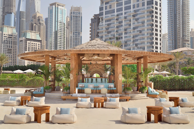 Caña Beach Dubai is a trendy beachfront venue located at the Rixos Premium Dubai on Jumeirah Beach Residence (JBR). With its stunning views of the Arabian Gulf and Palm Jumeirah, this vibrant beach club offers a perfect blend of tropical charm and Mediterranean-inspired elegance. The stylish, laid-back ambiance features comfortable loungers, private cabanas, and a lively atmosphere, making it a top choice for both relaxation and socializing.