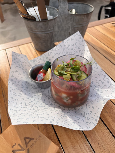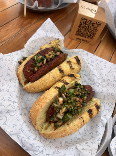 Caña Beach offers a fusion of Mediterranean and Latin American cuisines, featuring fresh seafood, grilled meats, tapas, vibrant salads, and other flavorful dishes designed to complement the beachside atmosphere.