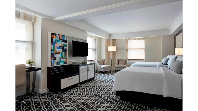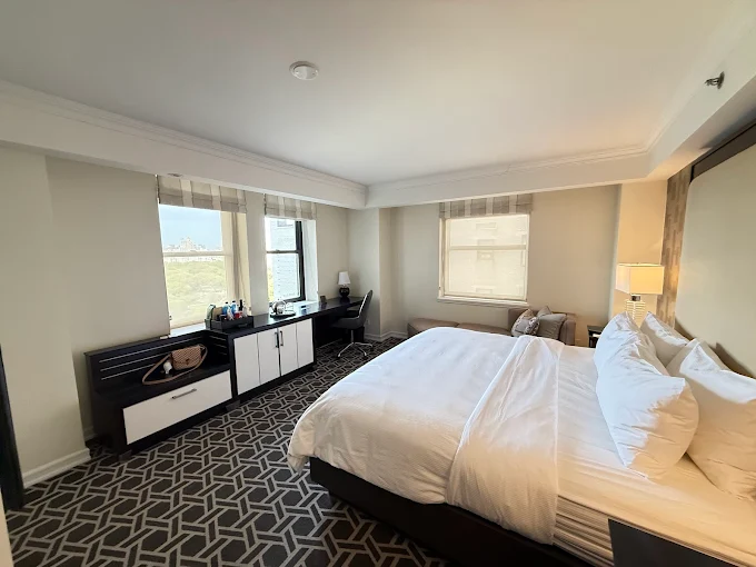 Accommodation: The JW Marriott Essex House offers 426 rooms, including 101 suites. Rooms are designed with Art Deco elements and include modern amenities such as premium bedding, spacious layouts, and stunning views. The hotel offers both guest rooms and larger suites, many of which overlook Central Park.