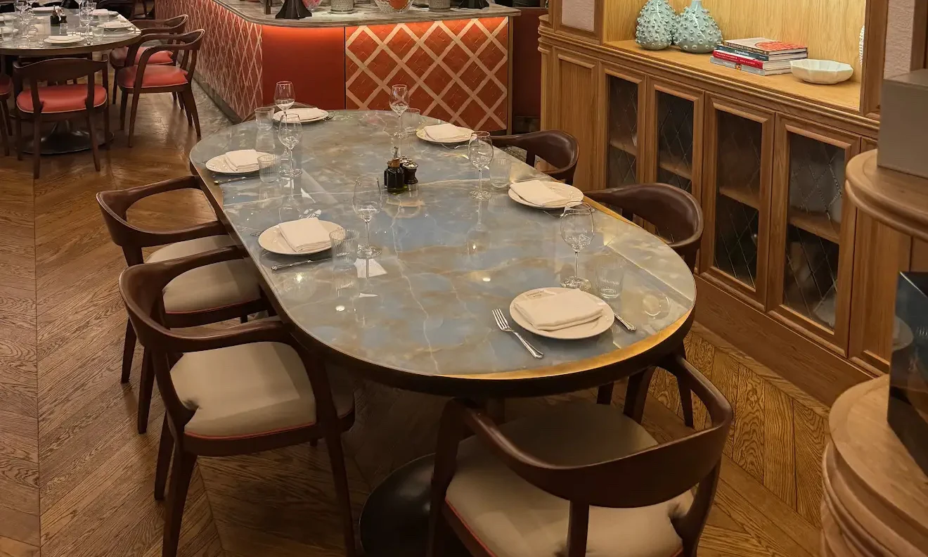 Designed with soft pastels, trellis-style interiors, and views over Cadogan Gardens, the space evokes the romance of a Parisian garden café. Whether you’re enjoying a quiet breakfast, a stylish lunch, or a candlelit dinner, La Maison Ani offers a sophisticated escape in the heart of London.