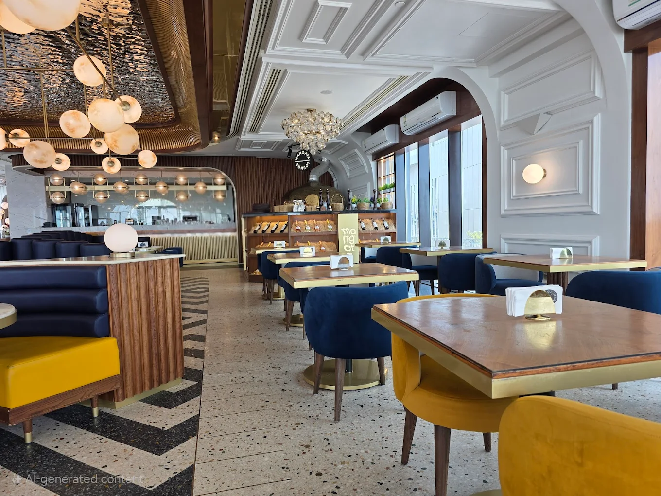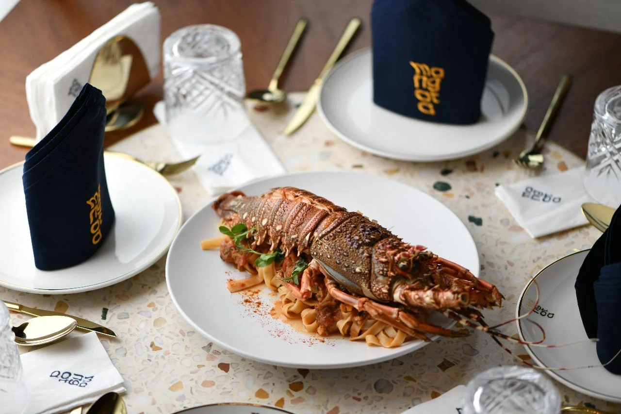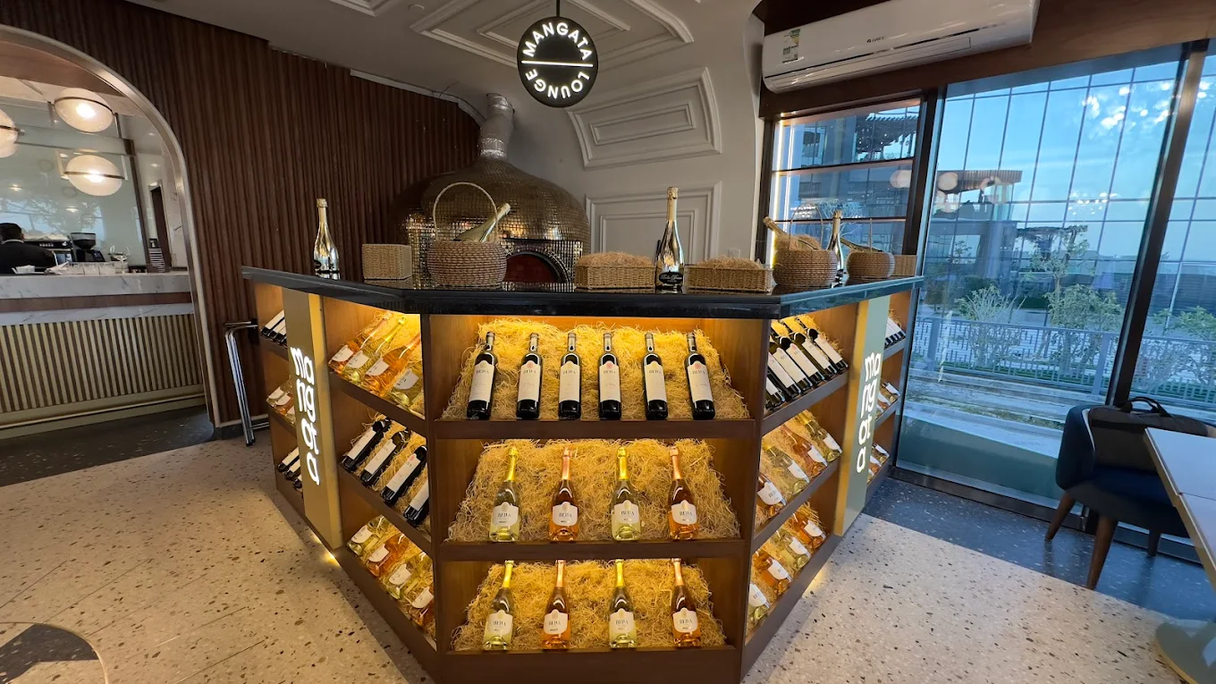Mangata Lounge specializes in modern international cuisine with a Mediterranean twist, featuring dishes like freshly prepared seafood, handcrafted pastas, and a selection of desserts and beverages.