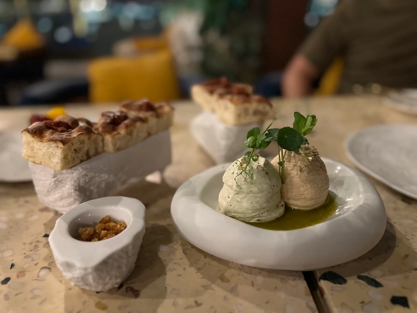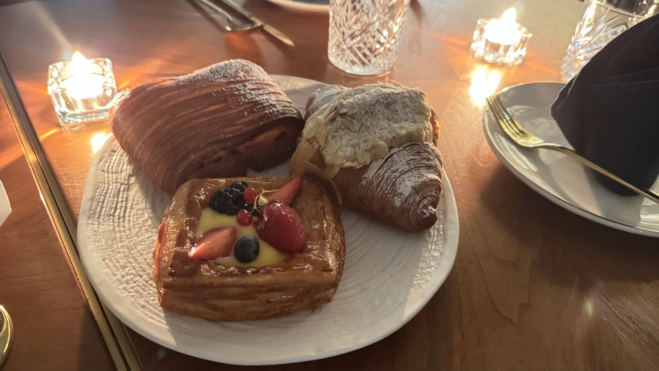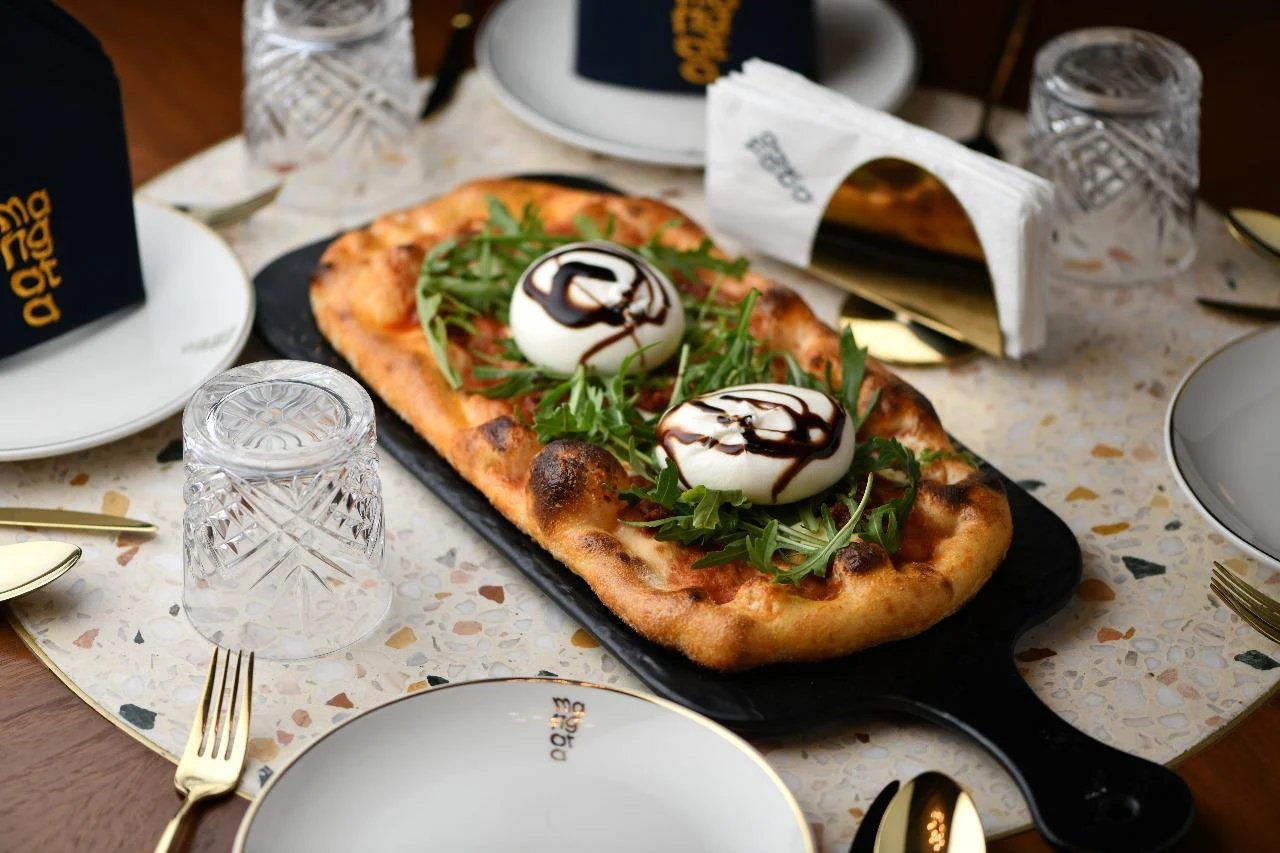 The menu features an artful selection of Mediterranean and international dishes, artisanal pastries, and specialty coffee—making Mangata ideal for intimate evenings, casual meet-ups, or late-night indulgence by the sea.