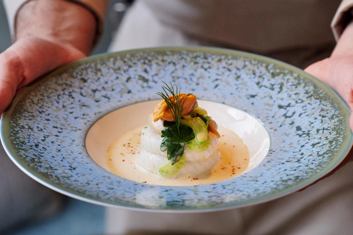 The restaurant offers modern French cuisine with a focus on seasonal British ingredients.