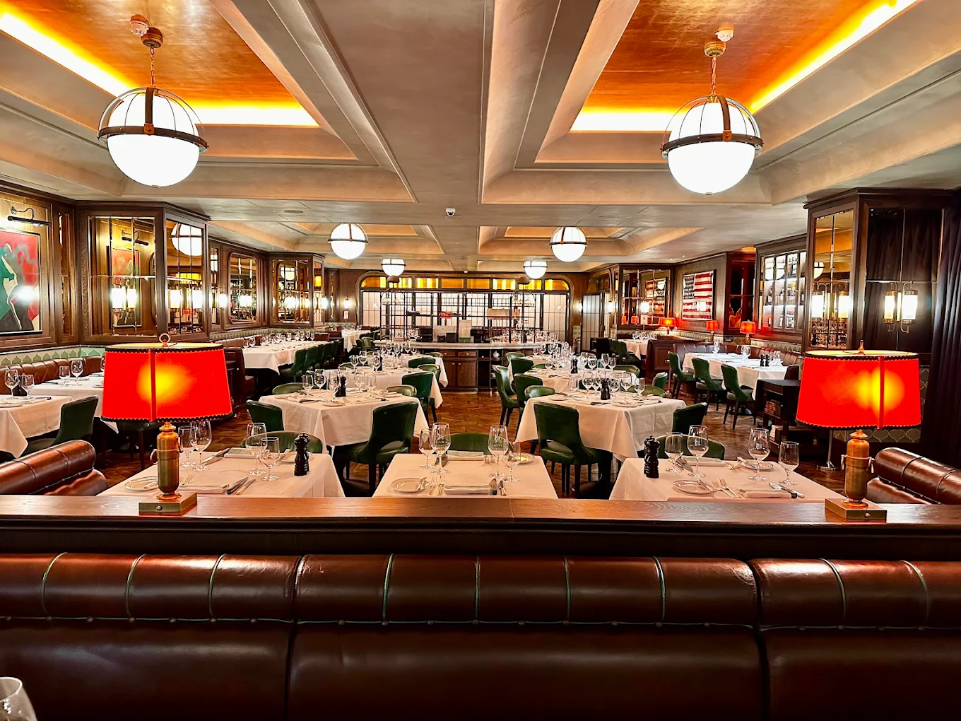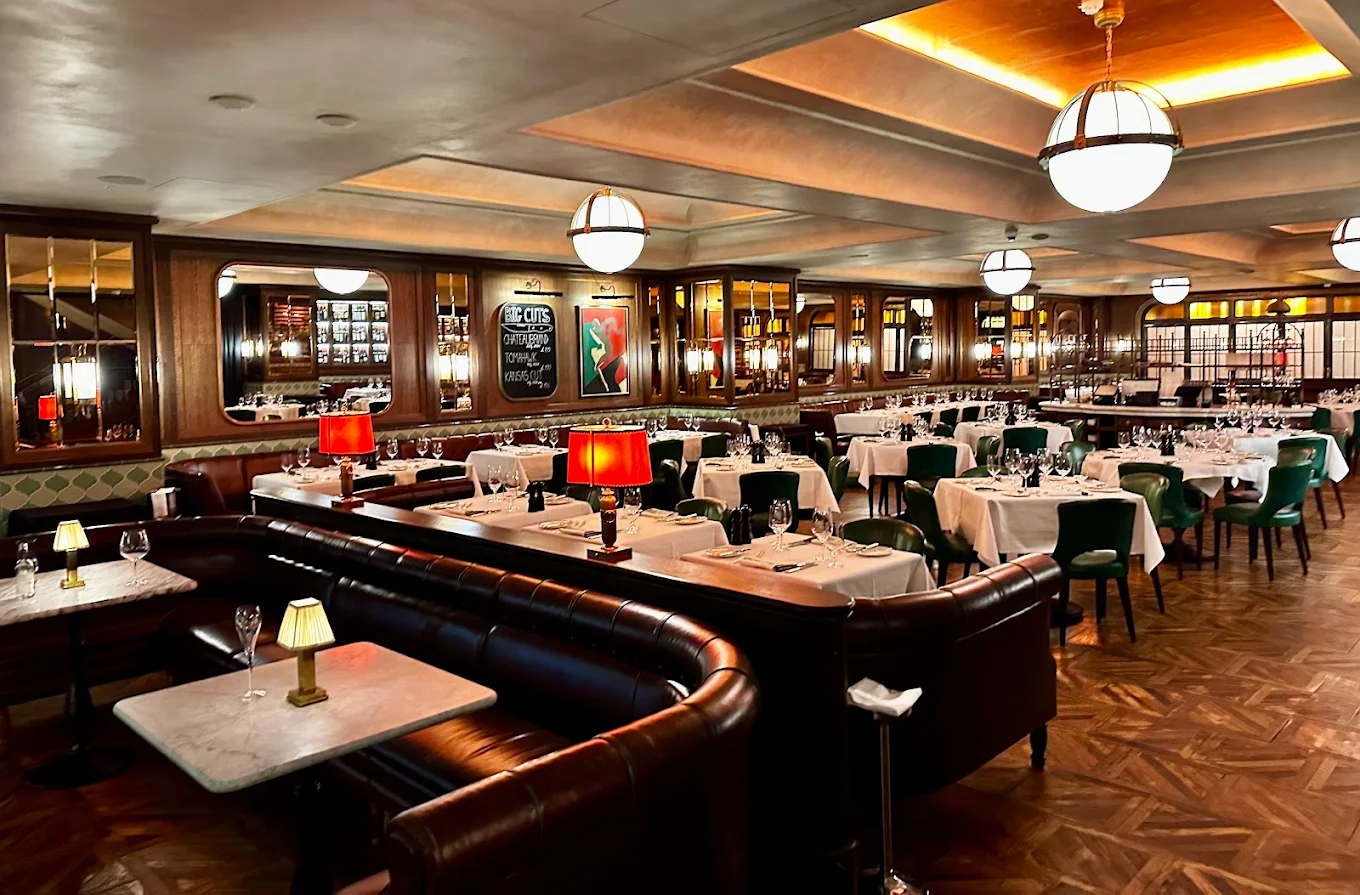 Spread across two stylish floors, the venue combines rich mahogany, leather banquettes, and Art Deco accents with a sense of timeless elegance. The menu features premium cuts of beef—many aged and butchered in-house—as well as fresh seafood, hearty sides, and indulgent desserts. Signature cocktails and an extensive wine list round out the offering.