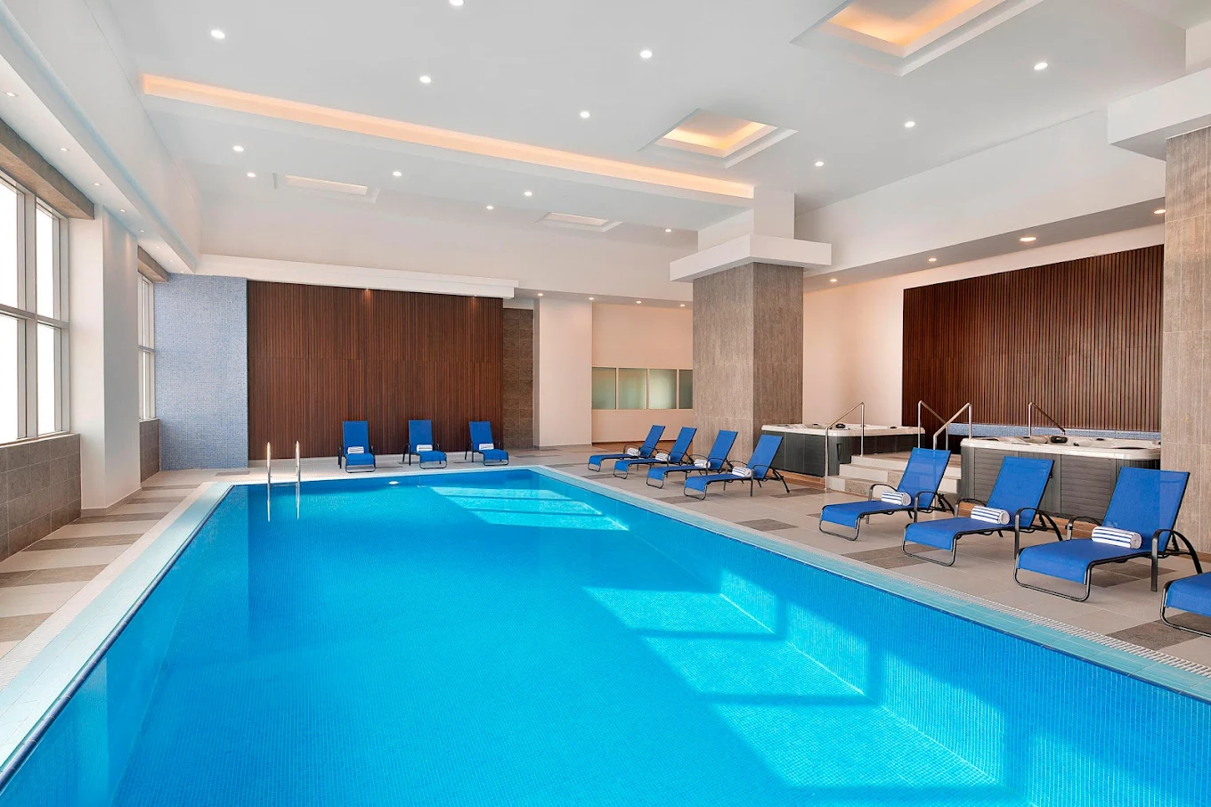The hotel features elegantly designed rooms and spacious suites with modern amenities, including Smart TVs, high-speed Wi-Fi, marble bathrooms, and thoughtful voco™ touches like This Works toiletries. Guests can relax at the luxurious Soul Spa, enjoy the indoor pool, or stay active in well-equipped, gender-separated fitness centers.